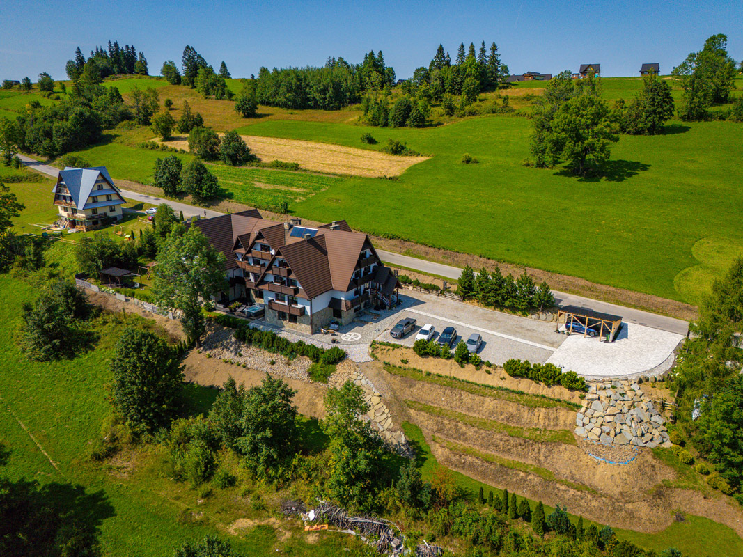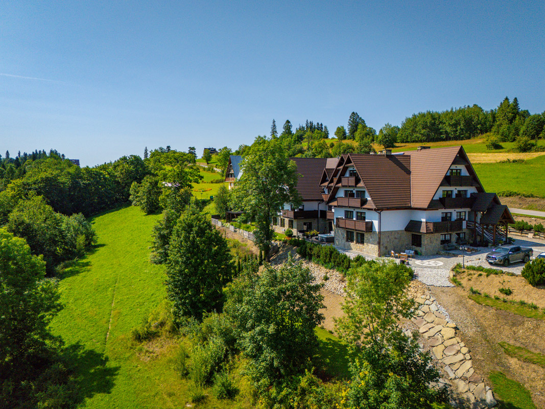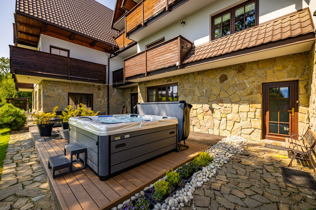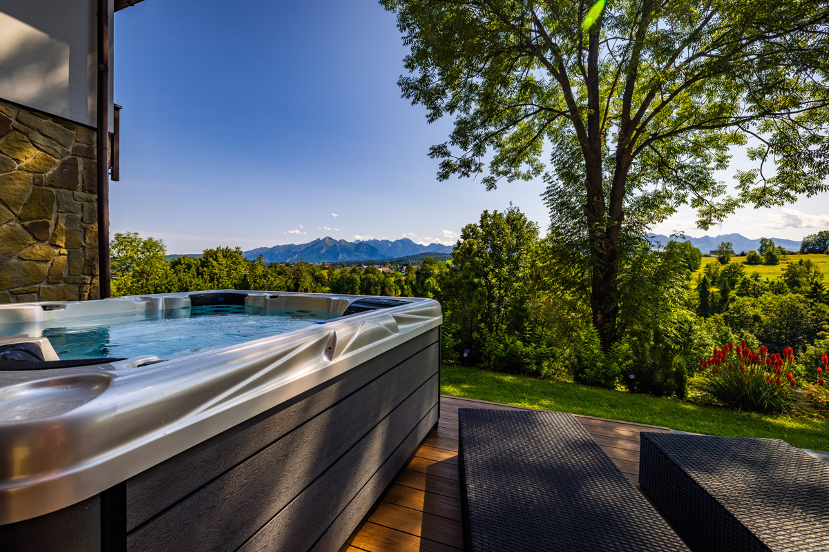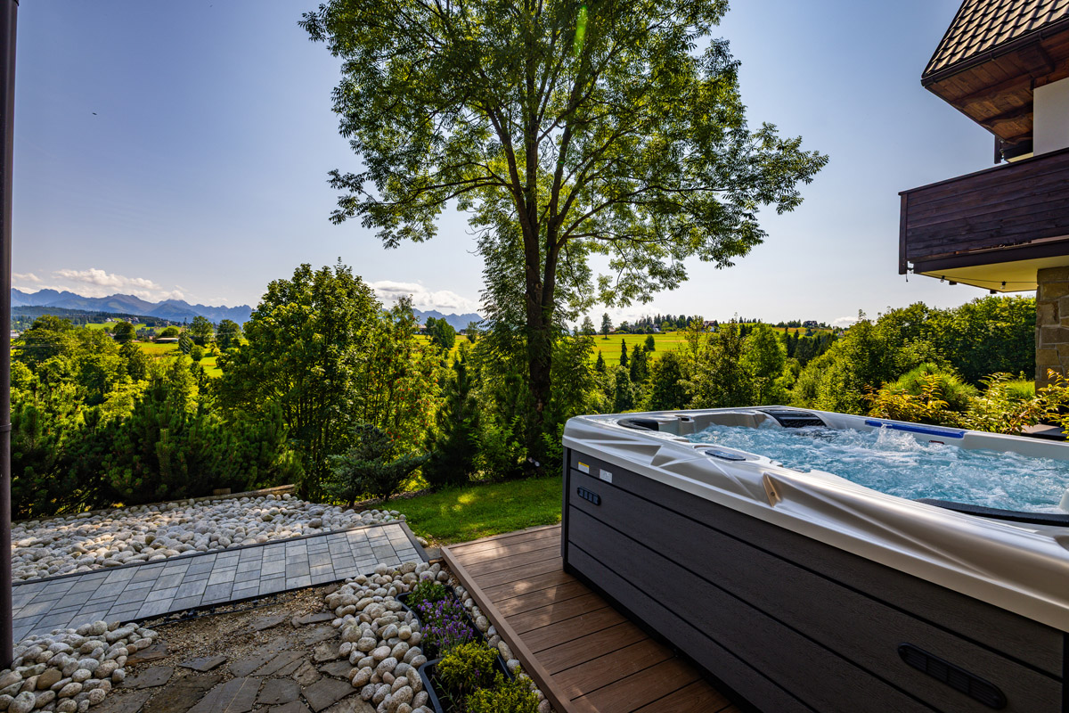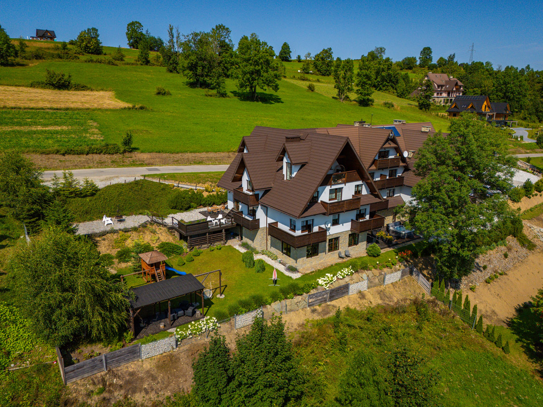 Mając takie widoki jak w Bystrym, grzechem byłoby ograniczać się do czterech ścian! Dlatego, przedłużeniem budynku jest duży, słoneczny taras z leżakami, na który zapraszamy od wiosny aż do późnej jesieni. Do dyspozycji naszych Gości oddajemy też piękny zielony ogród z mnóstwem atrakcji dla małych odkrywców, którzy znajdą w nim trampolinę, drewniany domek i inne zabawki.