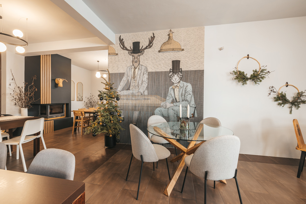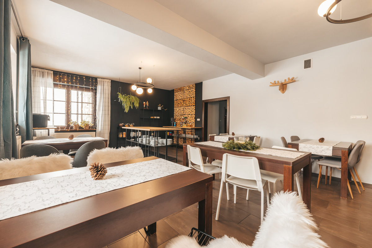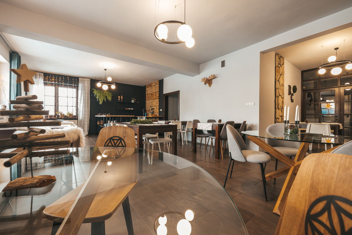 Jadalnia w Bystrym jest miejscem wyjątkowym, w którym każdy posiłek smakuje wybornie! To co ją wyróżnia, to nieprzeciętne wnętrze, pełne intrygujących dodatków ale też prostych i surowych form, dających przestrzeń, w której możesz rozkoszować się towarzystwem bliskich i miło spędzić czas.
